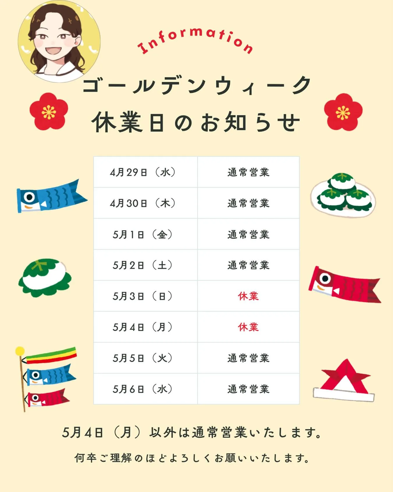 ゴールデンウィーク休業日のお知らせ📣